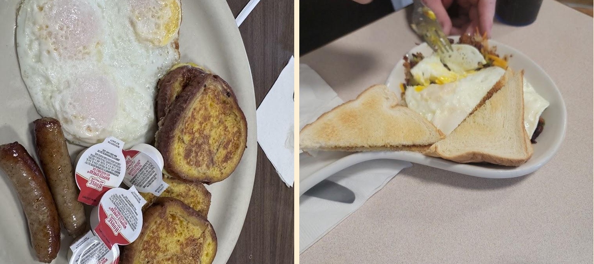 Pancakes are a favorite. Try the Pigs In A Blanket for a twist. The omelettes are also popular. Don't forget the desserts and a great selection of teas.